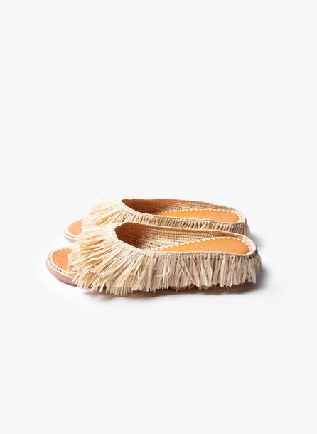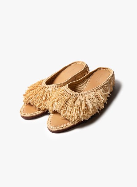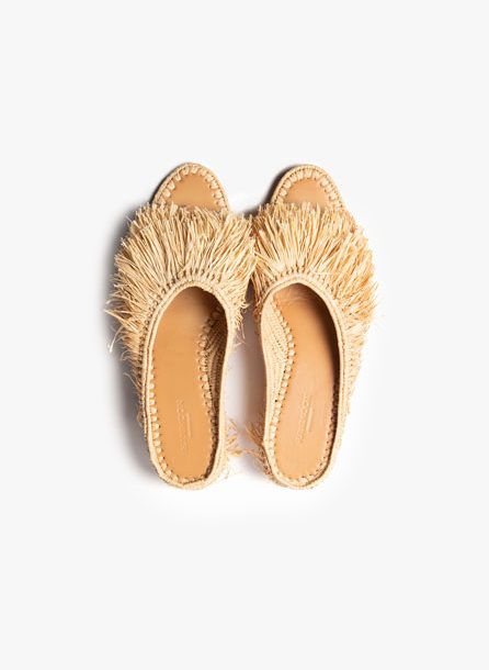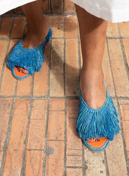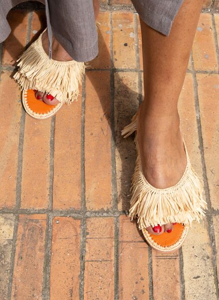Además, también diseñamos zapatos de Rafia con la técnica crochet. Esta es una técnica tradicional que consiste en trenzar a mano la Rafia. La Rafia que usamos en nuestras babuchas artesanales es una fibra natural que se extrae de las palmeras que crecen en las regiones tropicales.