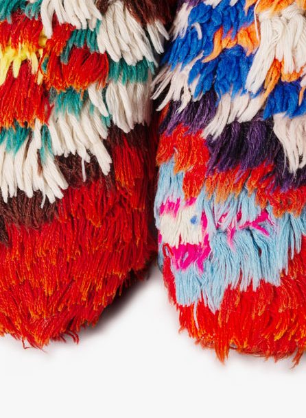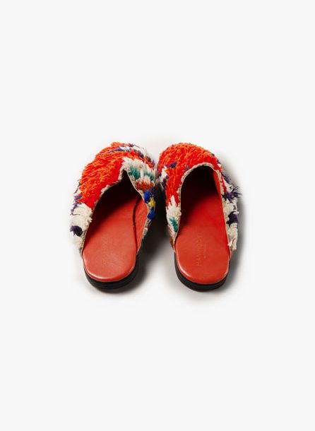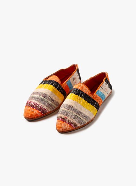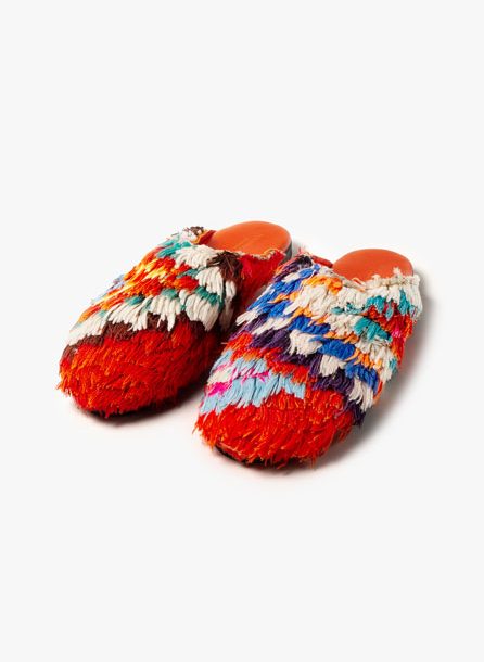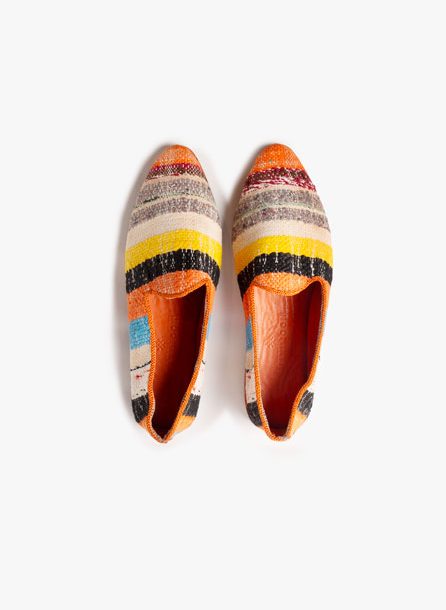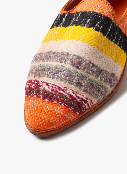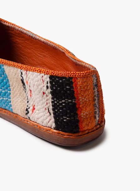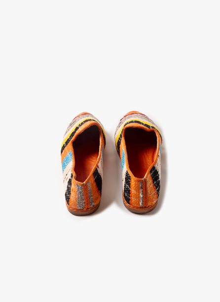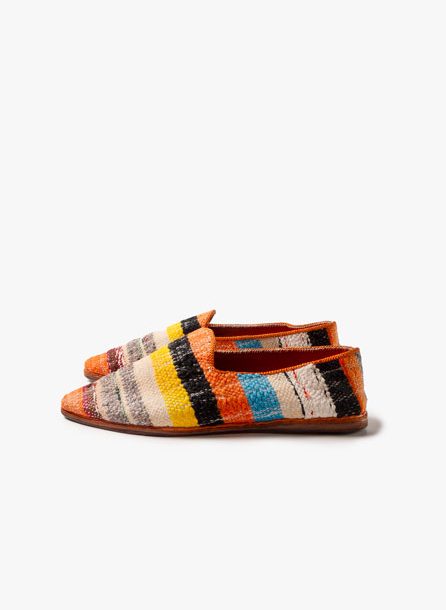 Creamos y diseñamos nuestras babuchas hechas a mano utilizando materiales que provienen de Marruecos. Ya sean los Kilims o las mantas vintage, conocidas como Haik.