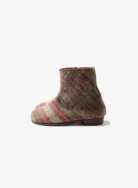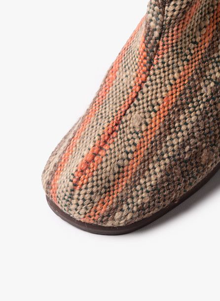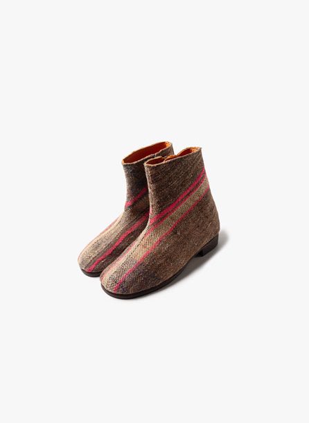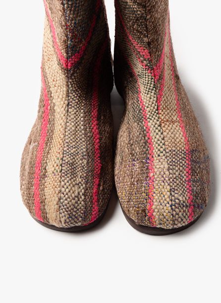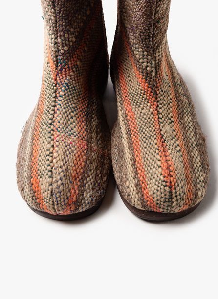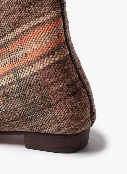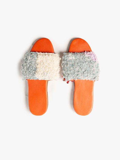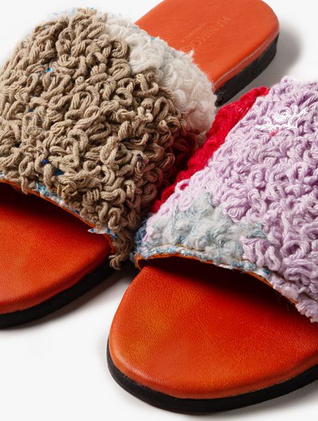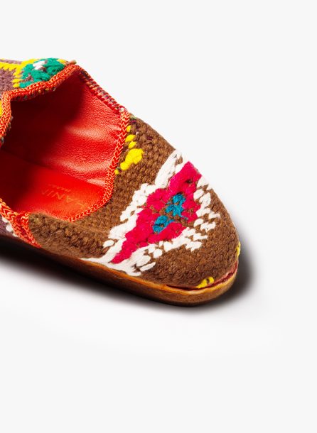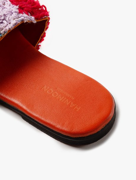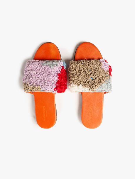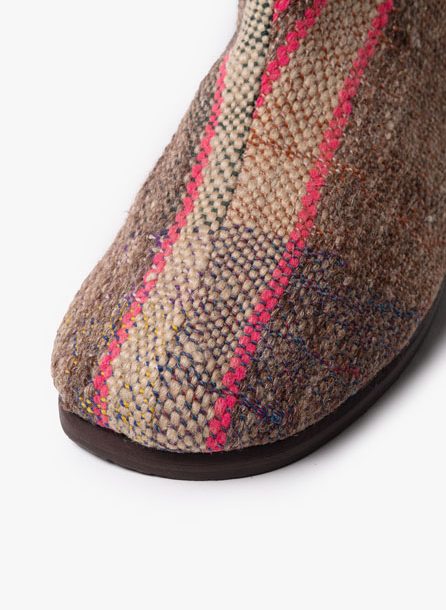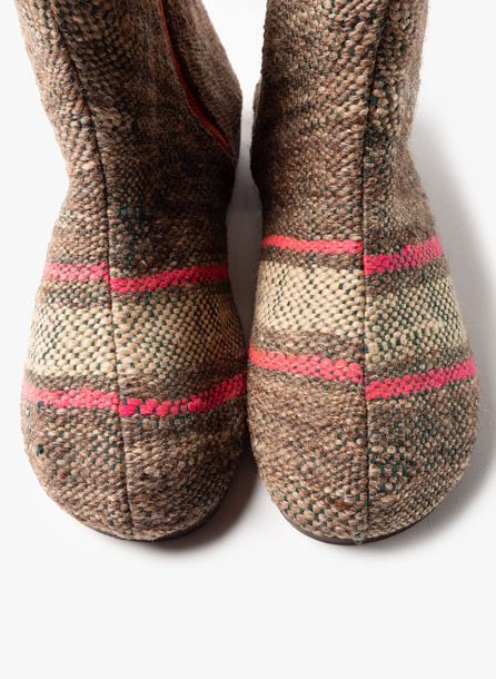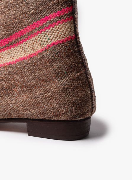 Creamos y diseñamos nuestras babuchas hechas a mano utilizando materiales que provienen de Marruecos. Ya sean los Kilims o las mantas vintage, conocidas como Haik.