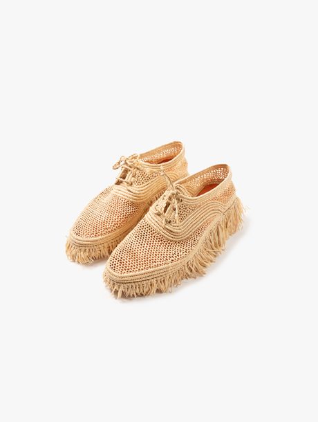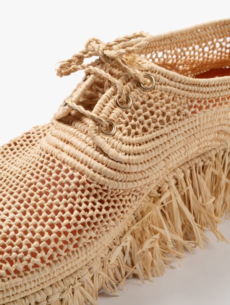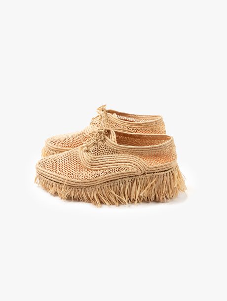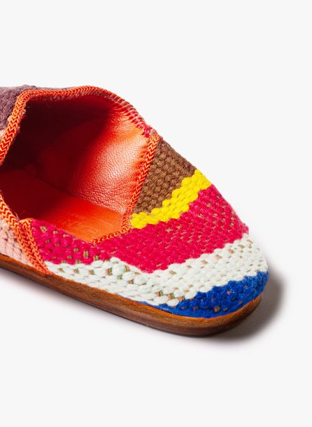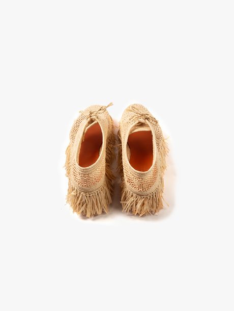 Además, también diseñamos zapatos de Rafia con la técnica crochet. Esta es una técnica tradicional que consiste en trenzar a mano la Rafia. La Rafia que usamos en nuestras babuchas artesanales es una fibra natural que se extrae de las palmeras que crecen en las regiones tropicales.