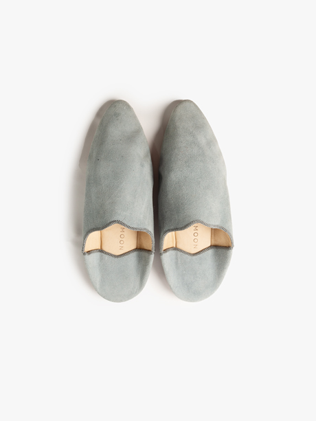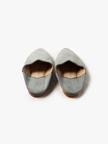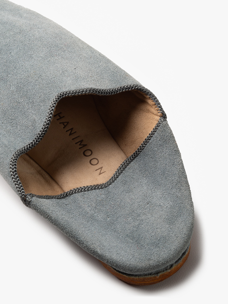 Babuchas de Ante color Azulón hechas a mano de manera artesanal.