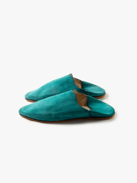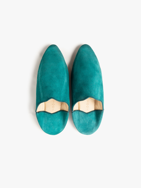 Babuchas de Ante color Verdoso hechas a mano de manera artesanal.