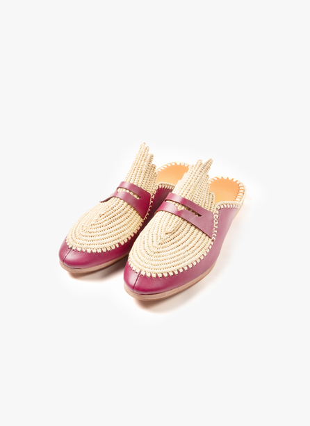 Babuchas de piel y rafia hechas a mano de manera artesanal.