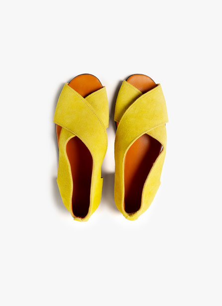 Sandalias de tiras cruzadas planas de Ante hechas de manera artesanal.