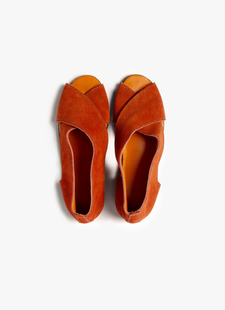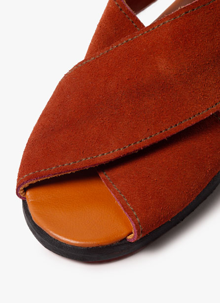 Sandalias de tiras cruzadas planas de Ante hechas de manera artesanal.