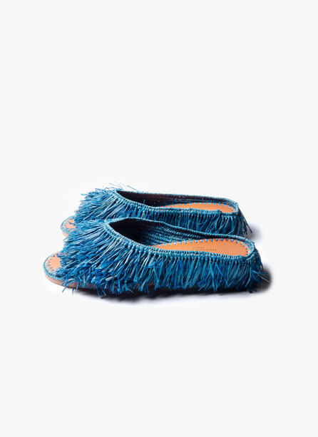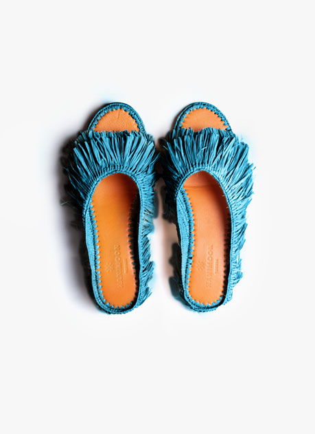 Sandalias de Rafia con Flecos y cuña en el talon.