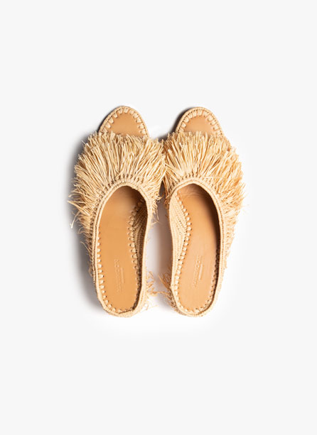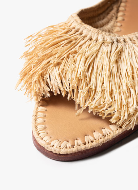 Sandalias de Rafia con Flecos y cuña en el talon.