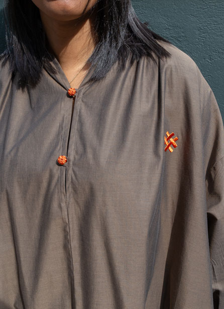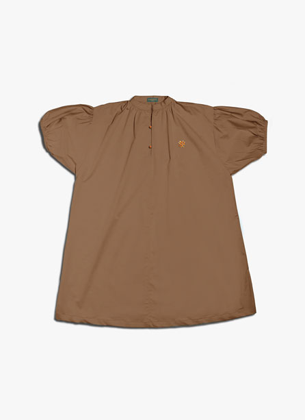 Detalle de frunces en manga, hombro y cuello.