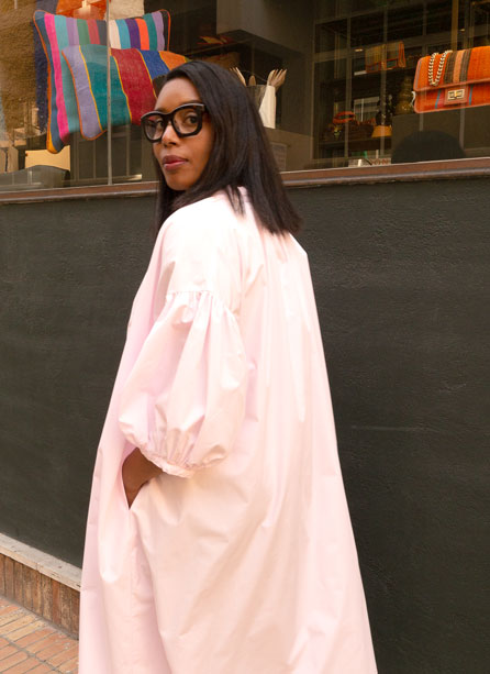 Detalle de frunces en manga, hombro y cuello.